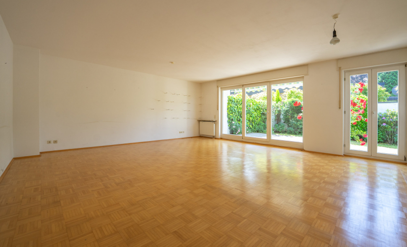 Im Erdgeschoss dieser kleinen Eigentümergemeinschaft befindet diese sehr interessante, in 1995 erbaute Wohnung mit 104m² ebenerdiger Wohnfläche. Dazu gibt es als absolute Seltenheit einen "riesigen" Keller-/Hobbyraum von ca. 35m² (nicht in der Wohnfläche enthalten). Besonders hervorzuheben ist der ca. 40m² große Wohn-/Essraum mit Fensterfront zur Süd-Terrasse und kleinem "Gärtchen". Ein ganz besonderer Bereich für schöne Momente...