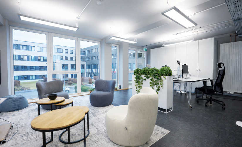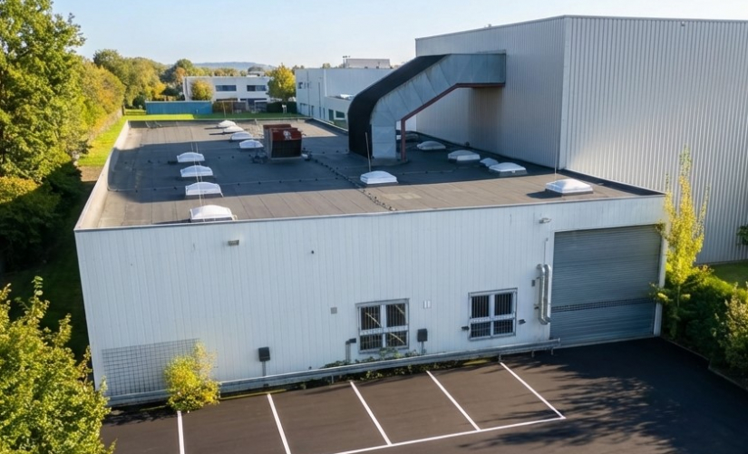 Ergänzt wird das Raumangebot durch attraktive Aufenthaltsräume sowie eine großzügige Dachterrasse, die zusätzlichen Aufenthalts- und Erholungswert bietet. Das Grundstück ist äußerst funktional gestaltet und verfügt über rund 47 PKW-Stellplätze direkt am Gebäude. Dank der großzügigen Zufahrtsbereiche sind auch Anlieferungen mit LKWs problemlos möglich.