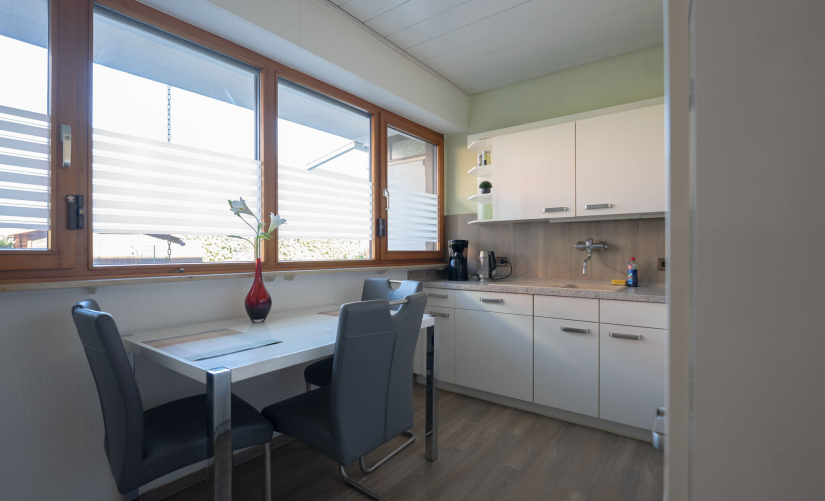 Abgerundet wird das Erdgeschoss mit einem Küchenbereich - ebenfalls mit großer Fensterfront - der ggfls. zum Wohnzimmer hin geöffnet und somit zur gefragten Wohnküche verwandelt werden kann. Zudem steht Ihnen selbstverständlich das gern gesehene Gäste-WC zur Verfügung.