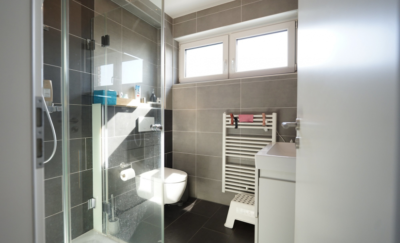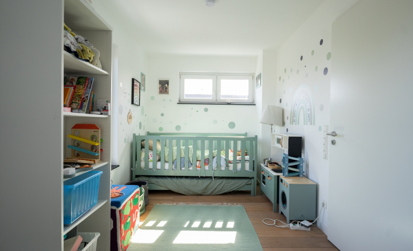 Im 1. Obergeschoss, welches derzeit als Kinderetage genutzt wird, stehen Ihnen zwei geräumige Schlafzimmer zur Verfügung. Ein modernes Großraum-Tageslichtbad mit bodentiefer Dusche, Wanne und 2 Waschbecken sowie ein praktischer Hauswirtschafts- und Technikraum mit Anschlüssen für Waschmaschine und Trockner unterstreichen das durchdachte Raumkonzept.