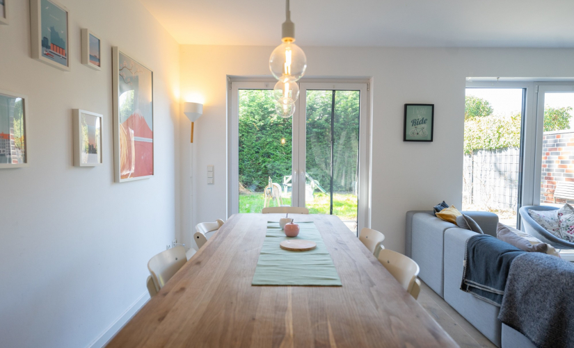 - lichtdurchflutete Räume dank zahlreicher bodentiefer Fenster-Elemente