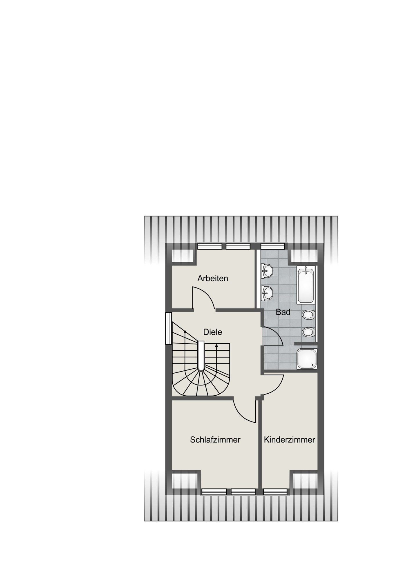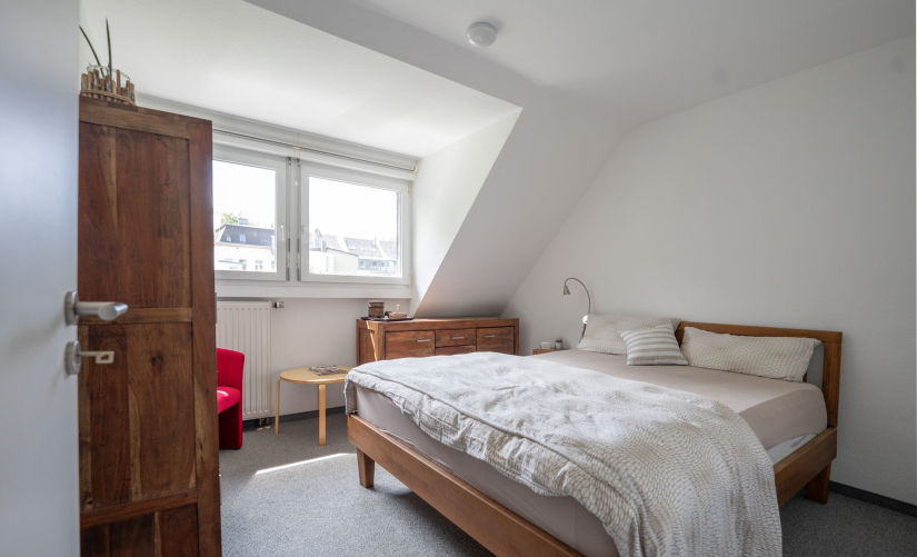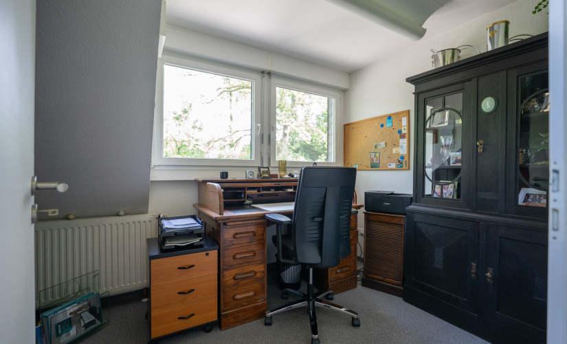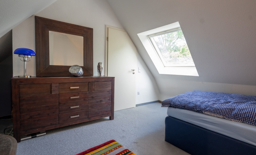 Im Obergeschoss erwarten Sie zwei gut geschnittene Schlafzimmer, ein Arbeitszimmer sowie ein hochwertiges Tageslichtbad mit Dusche und Badewanne. Das ausgebaute Dachgeschoss bietet einen zusätzlichen, großzügigen Raum – ideal als Jugendzimmer oder Gästebereich.