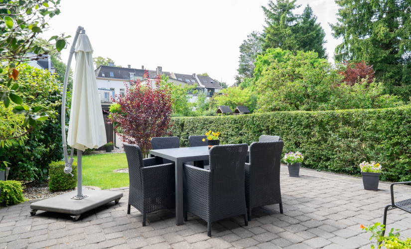Die Wohnfläche von ca. 120 m² verteilt sich auf drei Ebenen und bietet einen durchdachten, familienfreundlichen Grundriss. Das ca. 380 m² große Grundstück ist ideal bemessen – pflegeleicht, aber mit großzügigem Raumangebot für Freizeit und Erholung. Zwei Terrassen – eine zur Ostseite, eine zur Südwestseite – ermöglichen es, dem Sonnenverlauf zu folgen und sowohl morgens als auch abends den Außenbereich in vollen Zügen zu genießen. Ob Lounge-Ecke, Kinderspielbereich oder Grillplatz: hier ist Platz für individuelle Gestaltung. Zusätzlich gehört selbstverständlich auch noch der halbe Grundstücksanteil der Zuwegung zum Kaufobjekt.