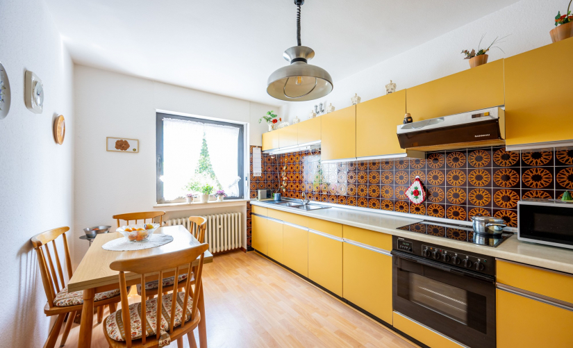 Das Erdgeschoss besticht durch einen großzügigen Wohn-/Essbereich mit direktem Zugang zur Terrasse und dem gepflegten Garten. Die angrenzende, derzeit separierte Küche kann bei Bedarf geöffnet werden und somit zum neuen Familien-Mittelpunkt werden. Großzügiges, offenes Wohnen: hier ist es möglich!