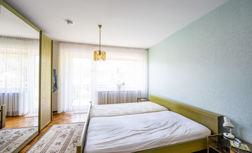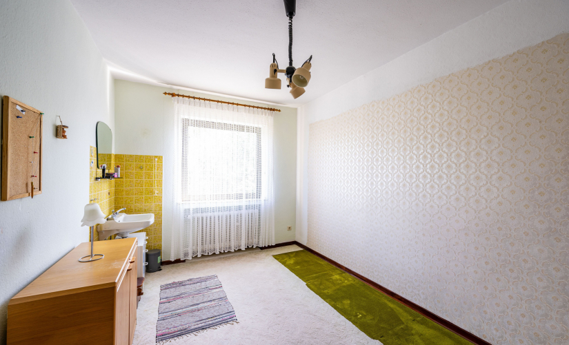 Im Obergeschoss erwarten Sie drei Schlafzimmer mit angenehmer Größe, eines davon mit Zugang zum Balkon und schönem Blick in den Garten. Das Tageslichtbad im Stil der 1970er-Jahre verfügt über eine Badewanne, eine Dusche sowie zwei Fenster und bietet sich für eine stilvolle Neugestaltung an.