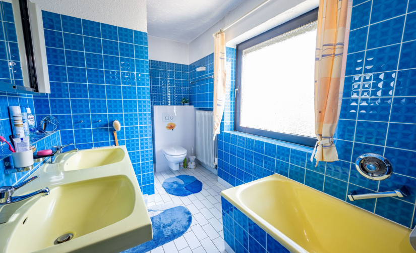 - Retro-Tageslichtbad mit Dusche und Wanne