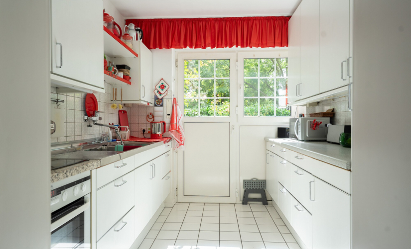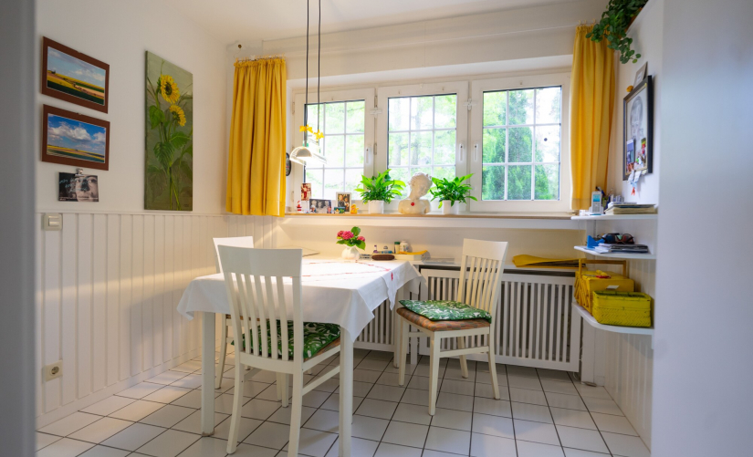 Auf insgesamt ca. 141 m² Wohnfläche empfängt Sie ein großzügiger Wohn- und Essbereich mit großen Fensterfronten, die den Blick in den weitläufigen Garten und auf die Terrasse freigeben. Der Garten selbst ist ein Paradies für Hobbygärtner und alle, die es noch werden wollen und bietet zahlreiche Möglichkeiten, die eigenen Ideen umzusetzen. Der bisher separate Küchenbereich ließe sich problemlos in den Wohnraum integrieren und könnte so zum neuen Mittelpunkt des Hauses werden – ein modernes, offenes Raumkonzept ist hier problemlos realisierbar. Ein kleines Gäste-WC mit Fenster rundet das Erdgeschoss ab.