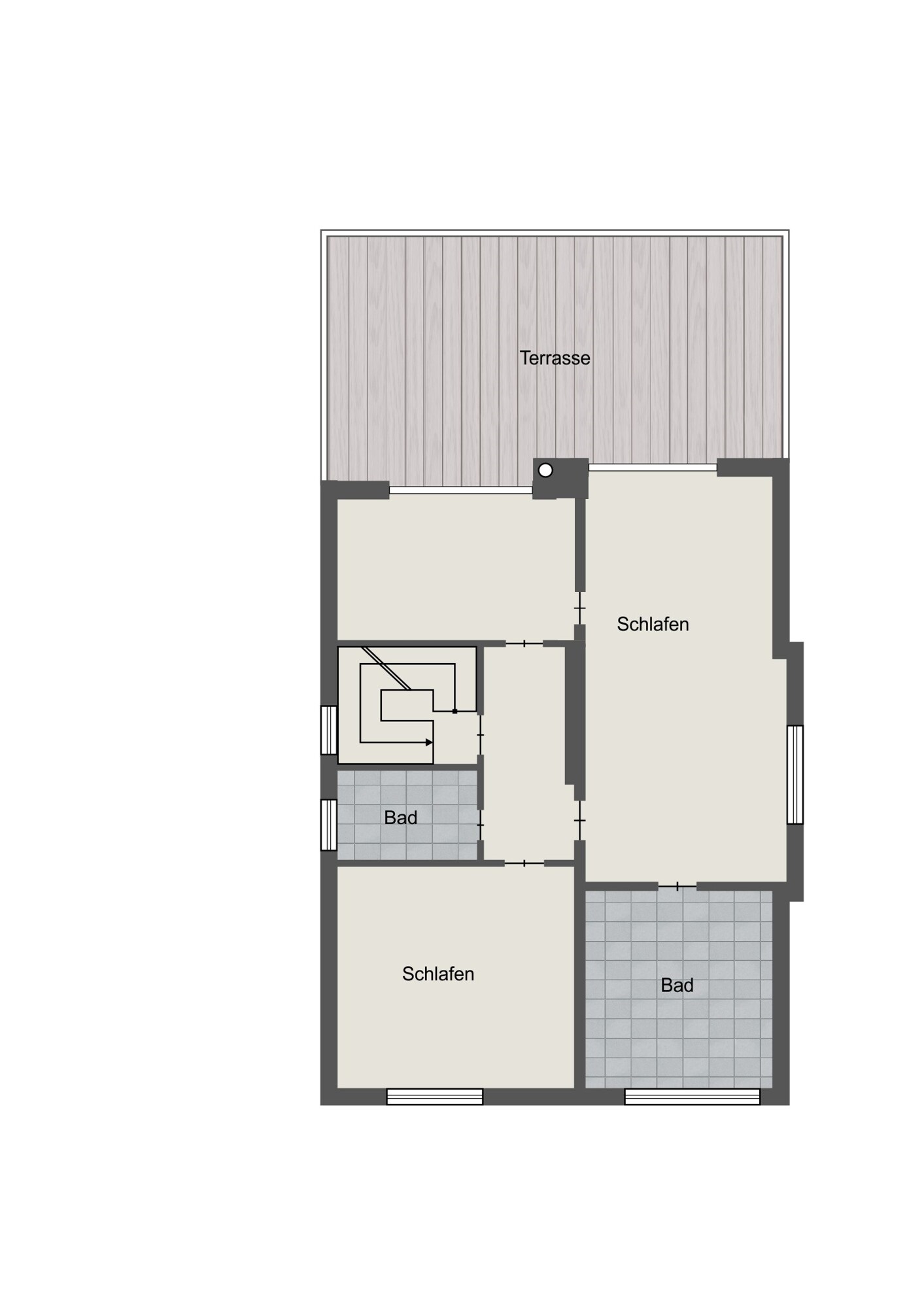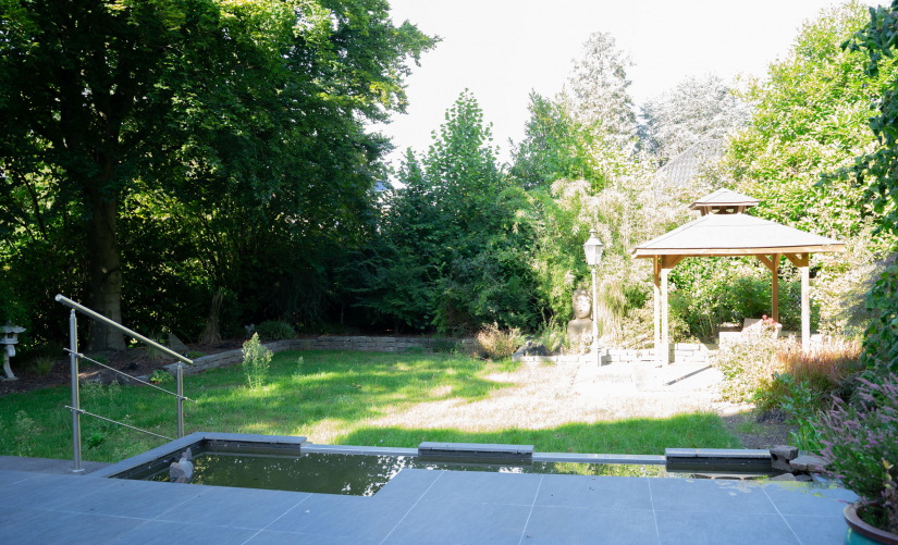 - große Terrasse im Obergeschoss mit Gartenblick
