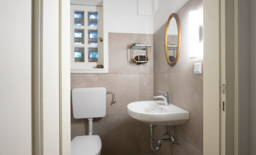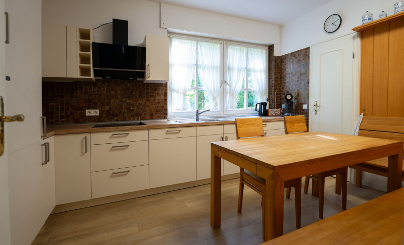 Die derzeit geschlossene Küche mit angrenzender Speisekammer ist neuwertig und bietet zudem Platz für eine gemütliche "Frühstücks-Ecke". Ein kleines Gäste-WC, welches bereits modernisiert wurde, vervollständigt die gelungene Aufteilung.