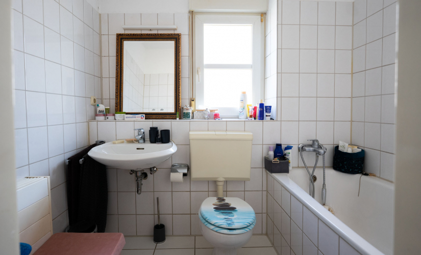 - weißes Tageslichtbadezimmer mit Badewanne