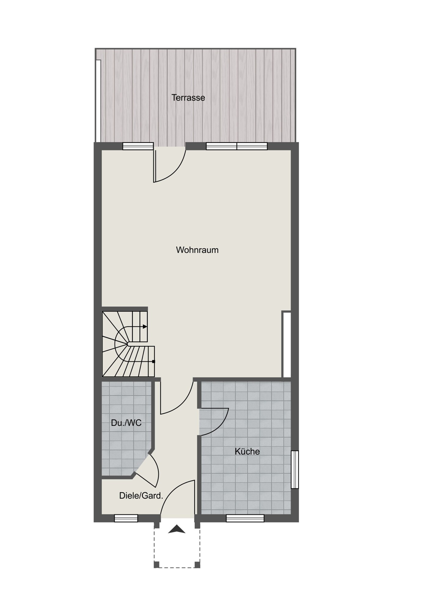 - Einzelgarage mit direktem Gartenzugang
