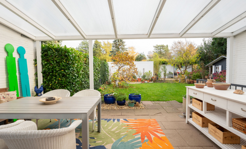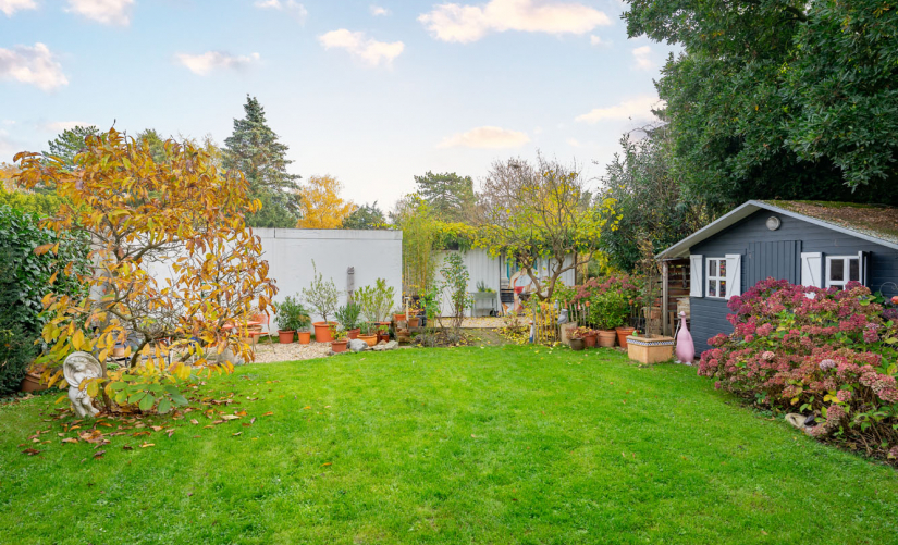 Im Erdgeschoss erwartet Sie ein heller, offener Wohn- und Essbereich mit gemütlichem Kaminofen, der durch seine vielen Fenster besonders freundlich wirkt und einen direkten Zugang zur überdachten Terrasse bietet. Diese lädt zum Verweilen und Entspannen ein – auch bei weniger schönem Wetter. Der Garten ist liebevoll angelegt und bietet mit einem charmanten Gartenhaus zusätzlichen Stauraum oder Platz für Hobby und Freizeit.
