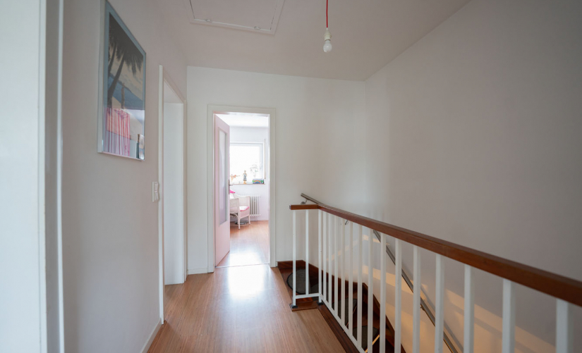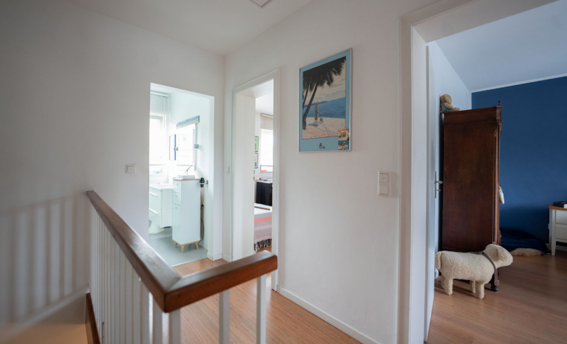 Im Obergeschoss stehen drei gut geschnittene Schlafzimmer sowie das moderne Tageslichtbad zur Verfügung. Durch die geschickte Raumaufteilung eignet sich das Haus ideal für Familien, Paare oder Menschen, die ein zusätzliches Arbeits- oder Gästezimmer benötigen.