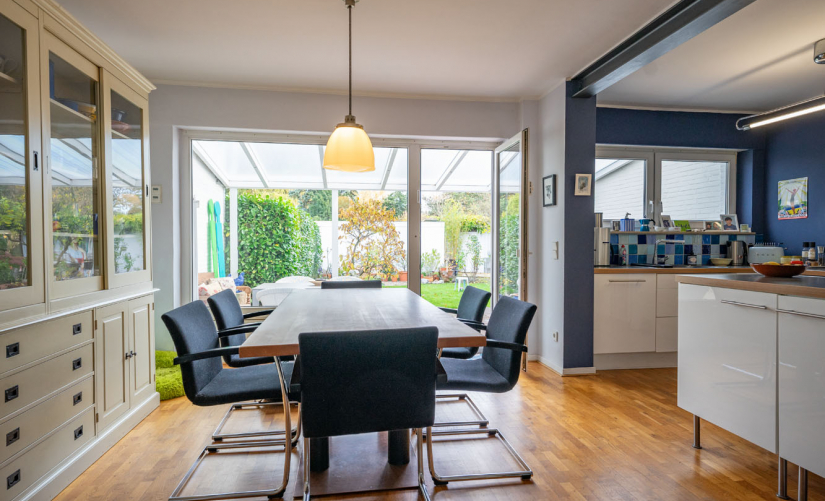 - offene Küche mit zeitlosen Einbauten