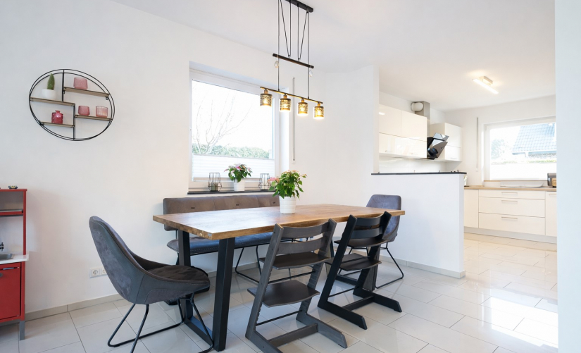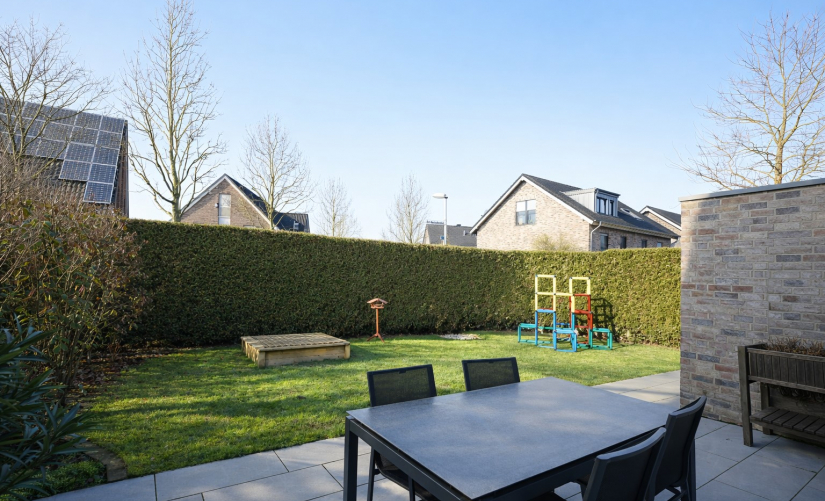Die Wohnfläche ist hervorragend aufgeteilt und schafft eine gelungene Balance zwischen Großzügigkeit und Funktionalität. Besonders einladend ist der offen gestaltete Wohn- und Essbereich mit integrierter Küche, der als zentraler Treffpunkt des Hauses fungiert. Große bodentiefe Schiebetüren öffnen den Raum zum hübsch gestalteten Garten mit großzügiger Sonnenterrasse und sorgen zugleich für ein lichtdurchflutetes Ambiente. Hier genießen Sie entspannte Stunden im Freien und einen harmonischen Übergang zwischen Innen- und Außenbereich – ein kleines privates Gartenparadies in ruhiger, gewachsener Nachbarschaft.