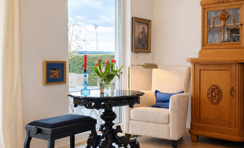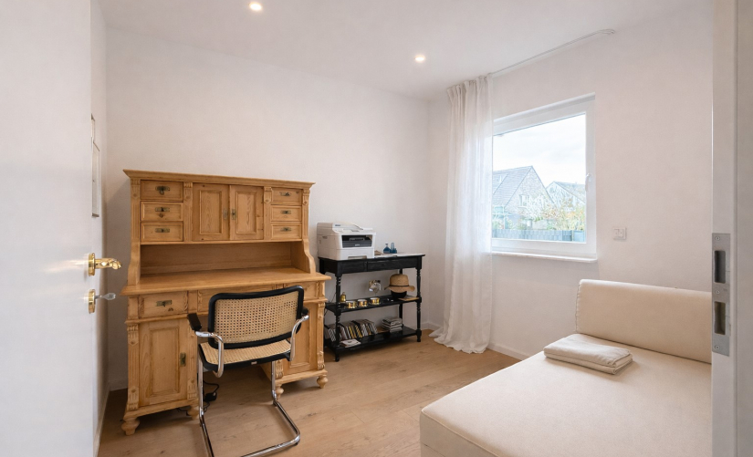 Zwei gut geschnittene Schlafzimmer, ein weiteres Zimmer – ideal als Homeoffice oder Gästezimmer – sowie ein zeitlos elegantes Tageslichtbad mit bodentiefer Dusche und Wanne runden das Raumangebot harmonisch ab. Ein Gäste-WC im Eingangsbereich ist selbstverständlich ebenfalls vorhanden.
