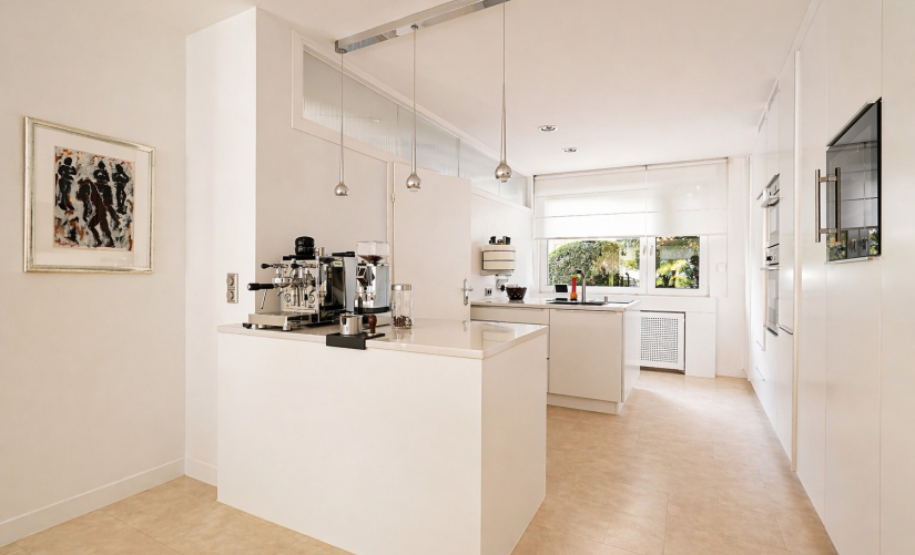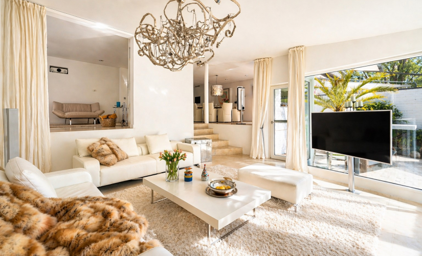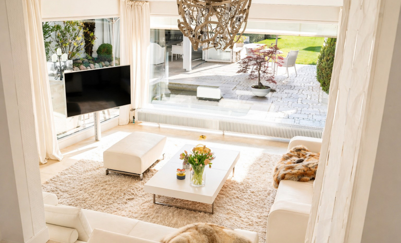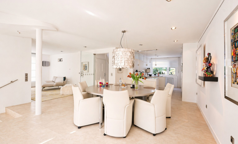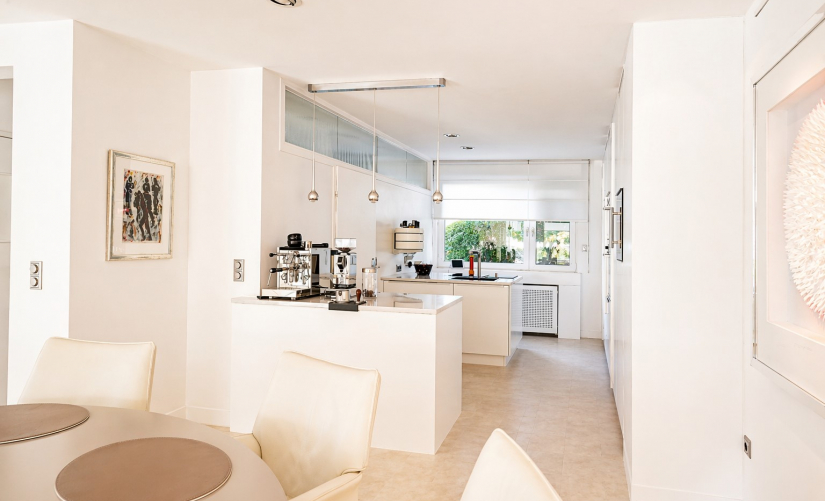 Bereits beim Betreten des Hauses wird die besondere Atmosphäre spürbar: Lichtdurchflutete Räume, eine durchdachte Split-Level-Architektur im Erdgeschoss sowie ein harmonisches Farbkonzept in Weiß- und Cremetönen schaffen ein modernes und zugleich einladendes Wohngefühl. Verschiedene Wohnbereiche gehen fließend ineinander über und bieten somit vielseitige Nutzungsmöglichkeiten – ob als gemütlicher Rückzugsort, stilvoller Empfangsbereich oder offener Lebensmittelpunkt. Das Erdgeschoss wird durch eine zeitlose, offen gestaltete Küche, große Fensterfronten zum Garten hin und einem modernisierten Gäste-WC ergänzt.