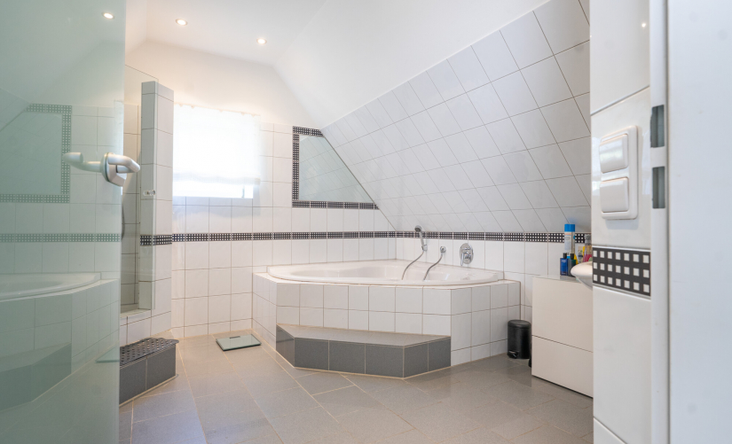 Im Dachgeschoss erwartet Sie neben einer offenen Galerie ein weiteres Zimmer sowie ein zusätzliches großes Badezimmer mit Eck-Badewanne und Dusche – ideal für Gäste, ältere Kinder oder als separater Arbeits- und Rückzugsbereich.