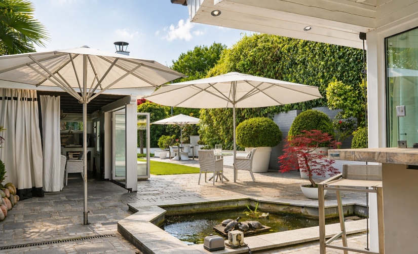 Der Außenbereich ist ein echtes Highlight dieser Immobilie: Der liebevoll gestaltete Garten bietet mehrere gemütliche Sitzecken, die zum Verweilen einladen, einen gradlinig angelegten Teich sowie ein charmant gemauerter Sitzbereich mit integrierter Outdoorküche und Kamin – perfekt für gesellige Abende mit Familie und Freunden, auch an den kälteren Abenden.
