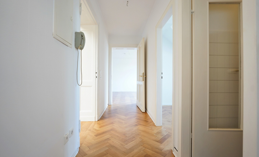Hohe Decke, überall hochwertiger Fischgrät-Parkett, originale Kassetten-Türen: Altbau-Living in Bestlage zu einem äußerst fairen Mietpreis!