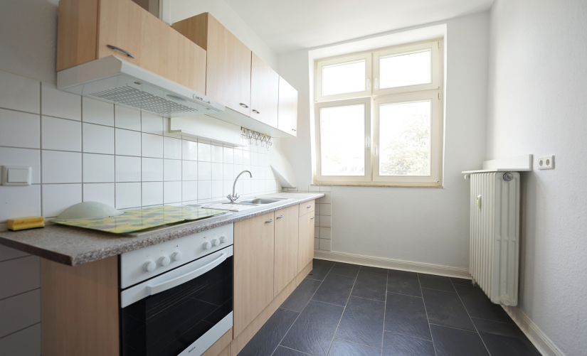 Ideal geeignet für eine alleinstehende Person erwartet Sie insgesamt eine gute Ausstattung. Es steht Ihnen ein geräumiger Wohnraum zur Verfügung, ein kleines (ca. 8 m²) Schlafzimmer, ein weiß gefliestes Duschbad und ein gemütlicher Küchenbereich inklusive Einbauküche. Einen Balkon oder eine Terrasse gibt es allerdings leider nicht!