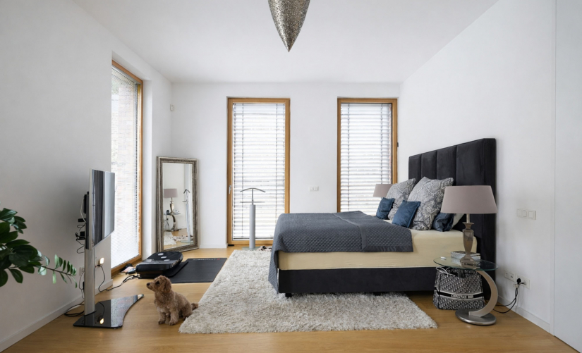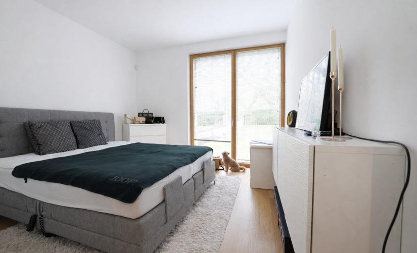 Der durchdachte Grundriss des Architektenhauses gewährleistet maximalen Komfort: Zwei geräumige Schlafzimmer, drei luxuriöse Bäder, ein drittes Zimmer, welches sich hervorragend als Home-Office eignet, sowie ein separater Hauswirtschaftsraum bieten ideale Bedingungen für ein anspruchsvolles Wohnkonzept. Details wie überhohe, flächenbündige Türen, edle Bodenbeläge, Fußbodenheizung in allen Räumen sowie der Kamin im Wohnzimmer unterstreichen die Einzigartigkeit dieser besonderen Immobilie.