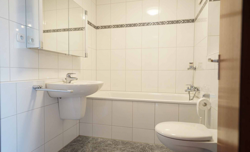 In der Wohnung angekommen, werden Sie vom geräumigen Wohnbereich empfangen. Lichtdurchflutet mit mehreren großen Fenster-Elementen, gelangen Sie von hier aus auf die frisch sanierte Terrasse mit einem hübschen Ausblick auf die Kastanienbäume. Der offen gestaltete Küchenbereich lädt ein zum Kochen mit Family & Friends und bildet in Kombination mit dem Wohnzimmer sicherlich Ihren neuen "Hauptaufenthaltsbereich". Eine Raumaufteilung, welche heutigen Ansprüchen absolut gerecht wird! Darüber hinaus befindet sich auf dieser Ebene ein weiß gefliestes Wannenbad und ein schönes Schlafzimmer mit bodentiefem Fenster-Element.