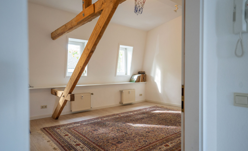 Absolut familiengerecht, stehen Ihnen insgesamt 3 geräumige Schlafzimmer zur Verfügung. Die höheren Raumdecken und die originalen Holzdielen bieten Ihnen pures Wohnvergnügen! In der ersten Etage steht Ihnen im Flügelanbau ein schönes und geräumiges Wohnzimmer mit großer Fensterfront zur Verfügung. Von hier aus gelangen Sie über den kleinen "Austritt" direkt in den Garten, welchen Sie zum größten Teil alleine nutzen können. Ein wahrer Zugewinn für Frischluft-Liebhaber mit ausreichend Platz für Grill- und Lounge-Bereich sowie Sandkasten und Co. Darüber hinaus wäre auch eine Vergrößerung des Balkons durchaus denkbar. Entscheiden Sie selbst...