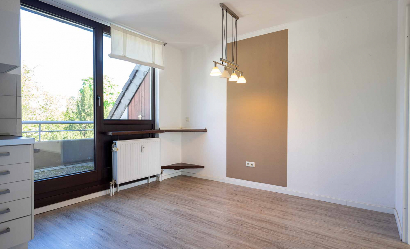 In der Wohnung angekommen, dürfte Sie die Aufteilung auf den ersten Blick überzeugen! Der gemütliche Wohnbereich ist dank größerer Fensterfront lichtdurchflutet und bietet Zugang auf die nach Süden ausgerichtete Sonnen-Terrasse. Ein wirklich schönes Plätzchen, um den wohlverdienten Feierabend entspannt genießen zu können. Die angrenzende, geräumige Küche überzeugt mit einem komfortablen Schnitt und wartet mit ausreichend Platz für einen Essbereich auf. Von hier aus gelangen Sie auf die zweite, nach hinten ausgerichtete Terrasse mit Abendsonne. Das weiß geflieste Duschbad rundet diese Etage ideal ab.