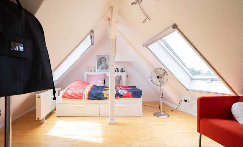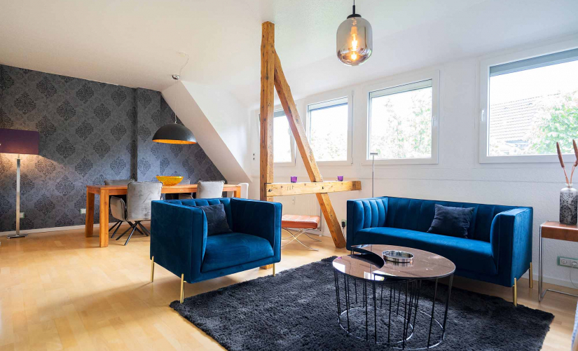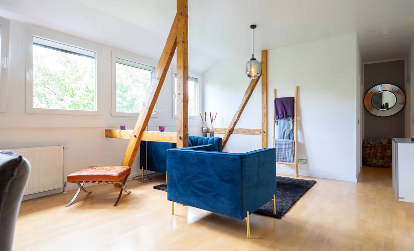 Sehr gut aufgeteilt, dürfte Ihnen bereits der geräumige und sehr schöne Eingangsbereich gefallen! Von hieraus erreichen Sie alle Räumlichkeiten der Wohnung. Ihren neuen "Hauptaufenthaltsbereich" bildet sicherlich der gemütliche Wohn-/Essbereich mit vielen Fenstern, zahlreichen Gestaltungsmöglichkeiten und freigelegten Dachbalken, welche einen ganz besonderen Charme mit sich bringen. Hier werden Sie sich wohlfühlen!