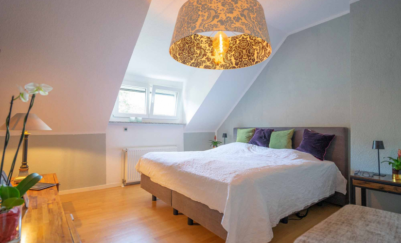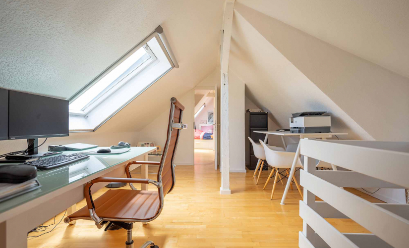 In der Oberen Etage, derzeit unterteilt in 2 Zimmer, finden Sie einen schönen Arbeitsplatz und ein weiteres, separates Schlafzimmer.