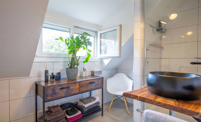- Badezimmer mit Dusche und Tageslichtfenster in 2023 modernisiert