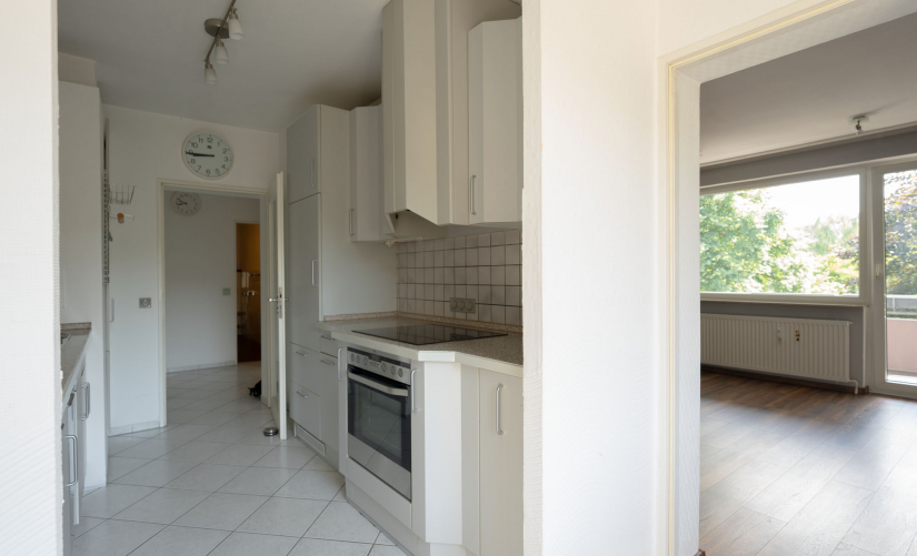 Im 3. Stock gelegen, empfängt Sie die Wohnung mit einem schön geschnittenen Eingangsbereich, von welchem Sie in alle Räume gelangen. Die Küche guter Größe - die Einbauküche ist übrigens im Kaufpreis enthalten -kann von zwei Seiten betreten werden. Angrenzend präsentiert sich das lichtdurchflutete, schöne Wohnzimmer mit Zugang zur Loggia, welche sich nahezu über die gesamte Breite erstreckt.