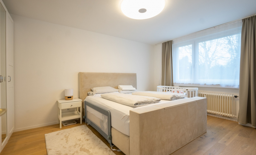- exklusiver, weiß geölter Parkettboden in Wohnraum, Diele und beiden Schlafzimmern