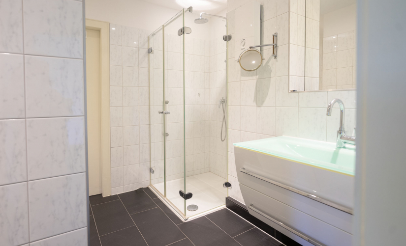 - modernisiertes Badezimmer mit Dusche