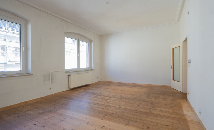 Die insgesamt ca. 74 m² Wohnfläche punktet mit einer guten Grundrissgestaltung, viel Platz und ausreichend Raum für Ihre Gestaltungsideen, da die Wohnung sich in einem renovierungsbedürftigen Zustand befindet. In der Wohnung angekommen, werden Sie vom überraschend geräumigen Dielenbereich empfangen, von welchem Sie jeden Raum erreichen. Herzstück der Wohnung ist das große Wohn- / Esszimmer mit großen Fenstern, welche mit den angedeuteten Rundbögen sowie dem umlaufenden Stuck an der hohen Altbau-Decke für charmantes Wohnfeeling sorgen!