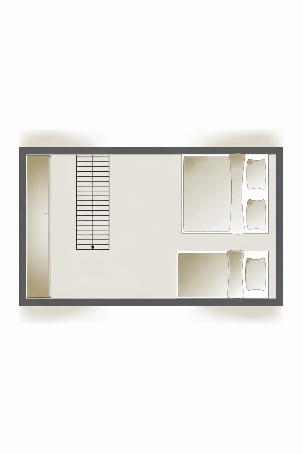 Die erste Ebene umfasst ein großzügiges Wohnzimmer, eine separate Küche mit gemütlichem Essplatz, das Duschbad sowie ein Schlafzimmer mit Doppelbett (160 x 200cm). Besonders hervorzuheben sind die vielen Einbauschränke, die für reichlich Stauraum sorgen. Im Gegensatz zu vielen anderen Immobilien auf Sylt, bei denen das Schlafzimmer oft in nicht genehmigten Kellerräumen oder Spitzböden untergebracht ist, ist hier alles auf einer Ebene sehr gut organisiert.
