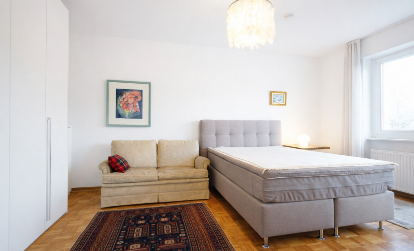 Die Küche überzeugt mit einer angenehmen Größe und bietet ausreichend Platz für eine kleine "Frühstücksecke". Das Schlafzimmer präsentiert sich ebenfalls äußerst großzügig geschnitten und bietet zudem einen direkten Zugang zum zweiten Balkon.