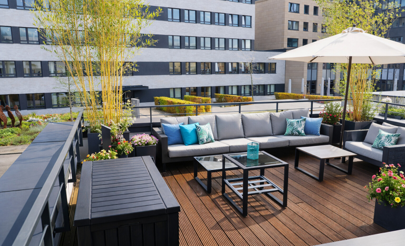 Ergänzt wird das Raumangebot durch attraktive Aufenthaltsräume sowie eine großzügige Dachterrasse, die zusätzlichen Aufenthalts- und Erholungswert bietet. Das Grundstück ist äußerst funktional gestaltet und verfügt über rund 47 PKW-Stellplätze direkt am Gebäude. Dank der großzügigen Zufahrtsbereiche sind auch Anlieferungen mit LKWs problemlos möglich.