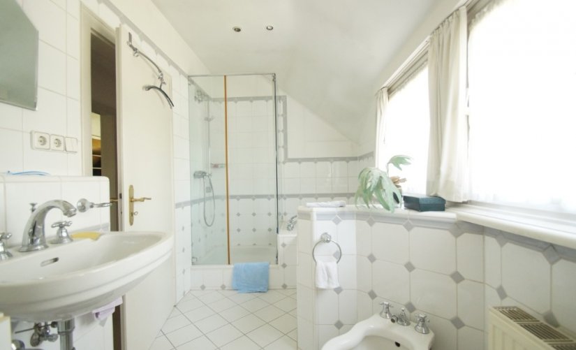 Das Oberschoss erreichen Sie über eine geschmackvolle Treppe, ideal in das vorhandene Grundrissbild eingepasst! Hier stehen Ihnen die 3 weiteren Schlafräume zur Verfügung. Das Badezimmer ist voll ausgestattet und hat natürlich ein Tageslichtfenster. Aber auch hier bedarf es einer kleinen Modernisierung.