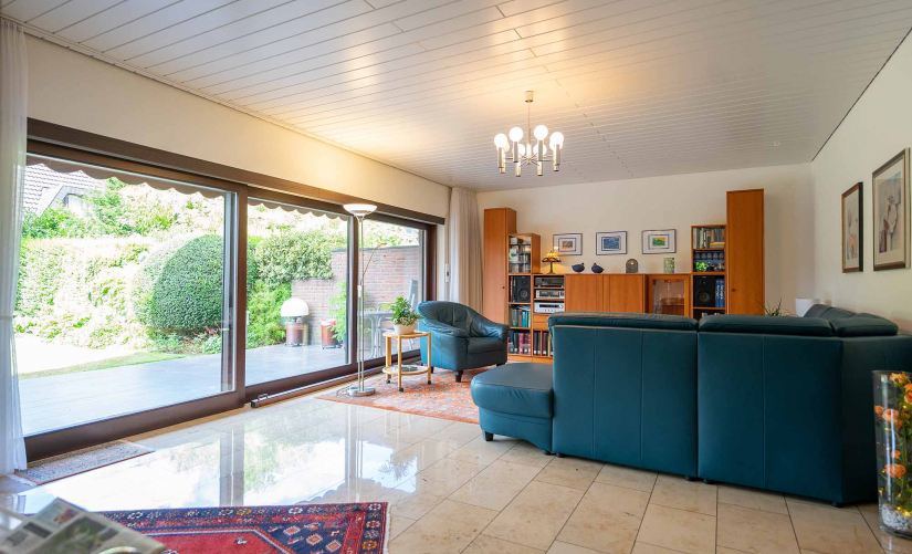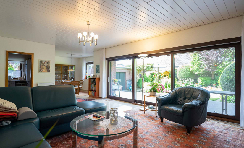 Die Eigentümerwohnung im Erdgeschoss überzeugt mit einem besonders geräumigen Wohn-/Essbereich mit separater Küche, welcher sich über die gesamte Breite des Hauses erstreckt. Lichtdurchflutet, dank vieler Fensterelemente, haben Sie von hier aus direkten Zugang in den schönen Sonnengarten mit toller Terrasse. Füße hochlegen und genießen...bereits sehr hübsch angelegt und perfekt eingefriedet, kann die Vorarbeit der jetzigen Eigentümer "entspannt übernommen" werden. Zwei Schlafzimmer, ein Kaminzimmer und gleich zwei Badezimmer runden die Etage perfekt ab!
