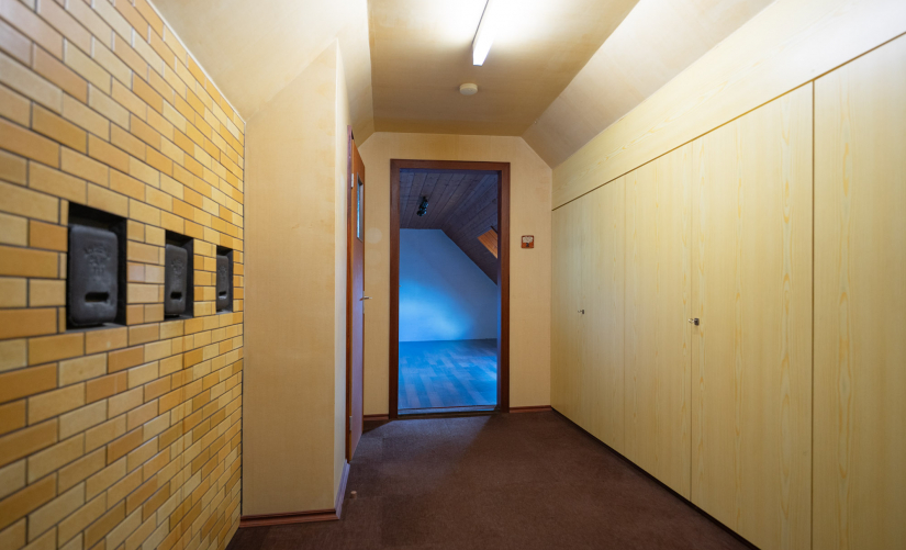 Weiter geht es im wohnlich ausgebauten Spitzboden. Hier steht Ihnen ein weiteres Zimmer sowie ein kleineres Gäste-WC zur Verfügung