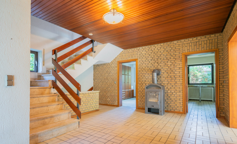 Unmittelbar neben dem Haus gelegen, befindet sich eine große Doppelgarage mit elektrischem Torantrieb. Was wollen Sie mehr? Die perfekte Familien-Immobilie in ganz besonderer Wohnlage. Klassisch - zeitlos - gepflegt. Die 70er Jahre grüßen! Demnach bedenken Sie den ein oder anderen Modernisierungsbedarf.