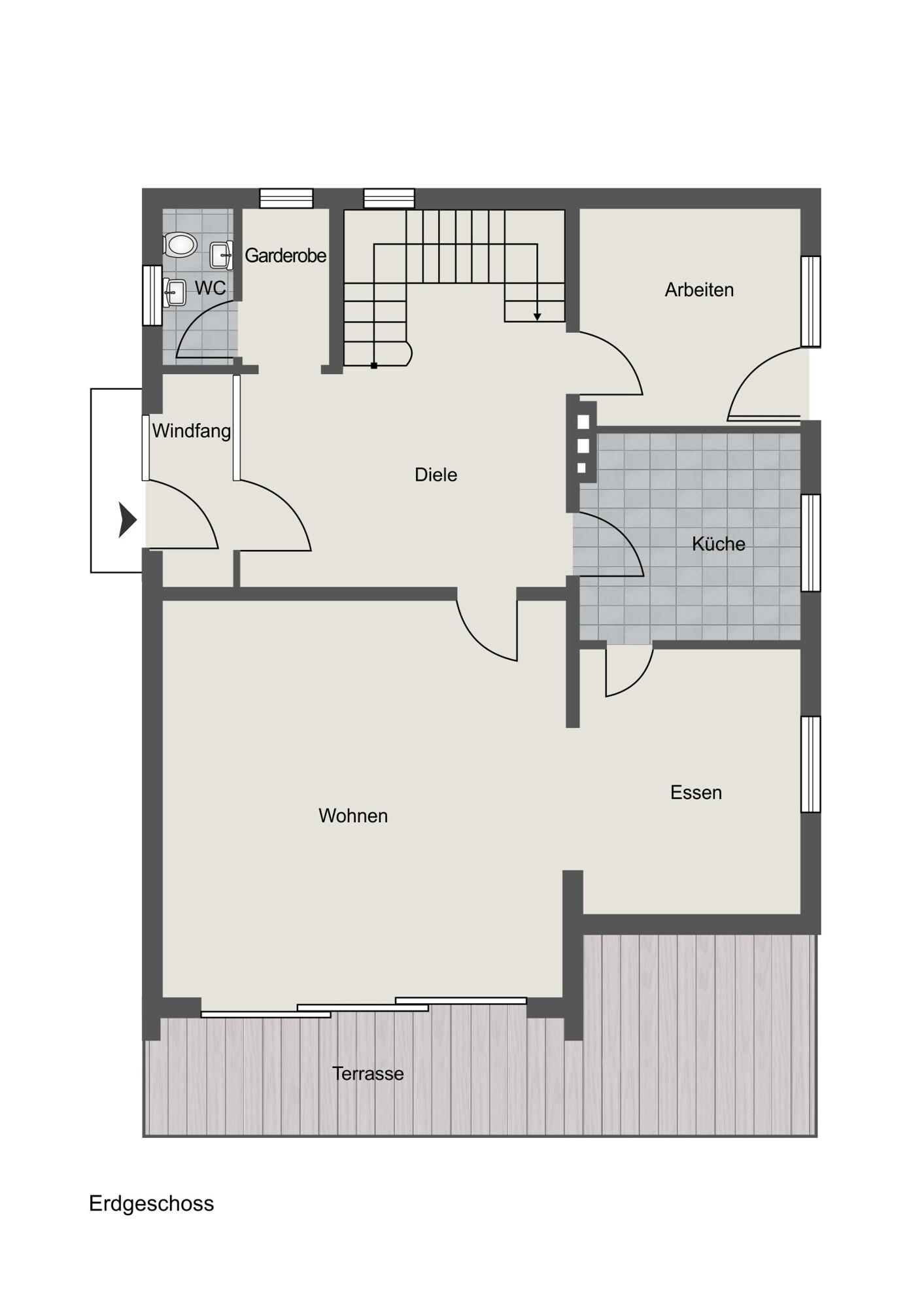 Der derzeit noch separierte Küchenbereich wartet ebenfalls mit ausreichend Platz auf. Sie bevorzugen eher eine offene Küche und träumen von einer Koch-Insel? Mit überschaubarem Aufwand können Sie hier Ihren Traum mit einem Durchbruch zum Esszimmer verwirklichen! Darüber hinaus steht Ihnen im Erdgeschoss ein Gäste-WC sowie ein weiteres, beliebig nutzbares Zimmer zur Verfügung.