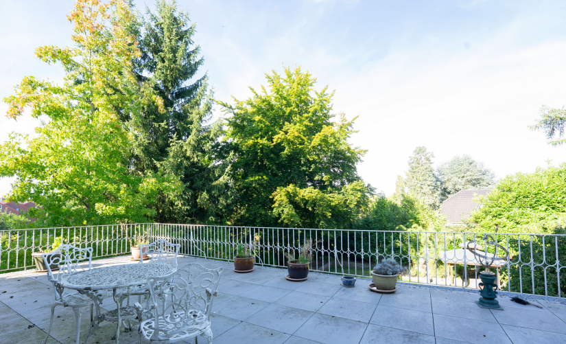 - große Terrasse im Obergeschoss mit Gartenblick