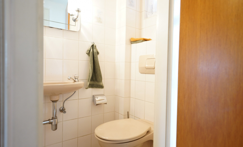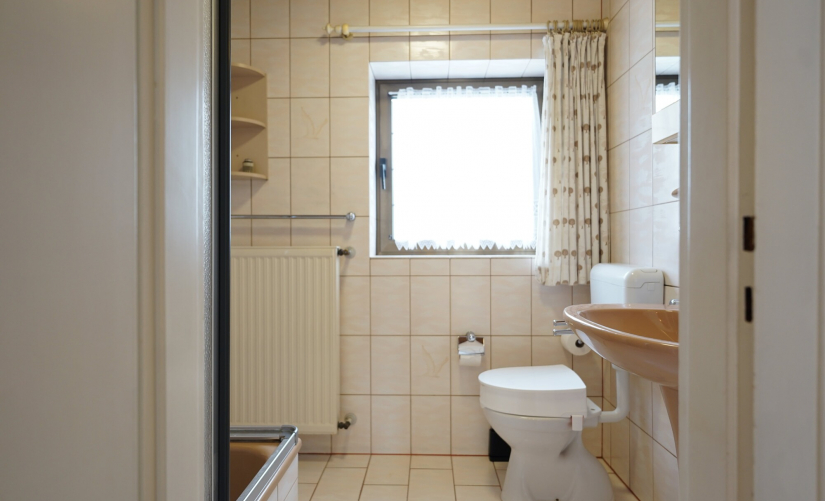 Die derzeit noch separierte Küche mit schönem Blick ins Grüne lässt sich bei Wunsch und handwerklichem Geschick zum Wohnbereich hin öffnen und schafft damit modernes, offenes Wohnen. Ein Gäste-WC mit Fenster im Eingangsbereich komplettiert das Erdgeschoss auf praktische Weise.
