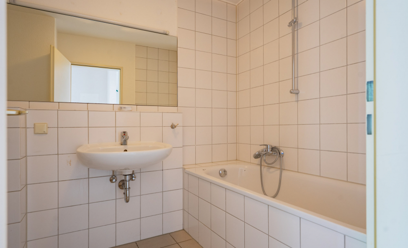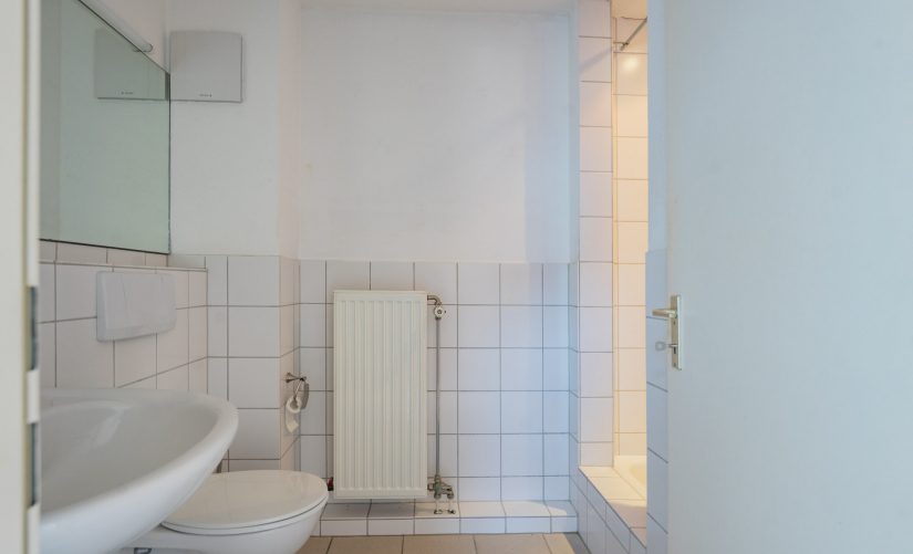 - zwei moderne, weiß geflieste Badezimmer