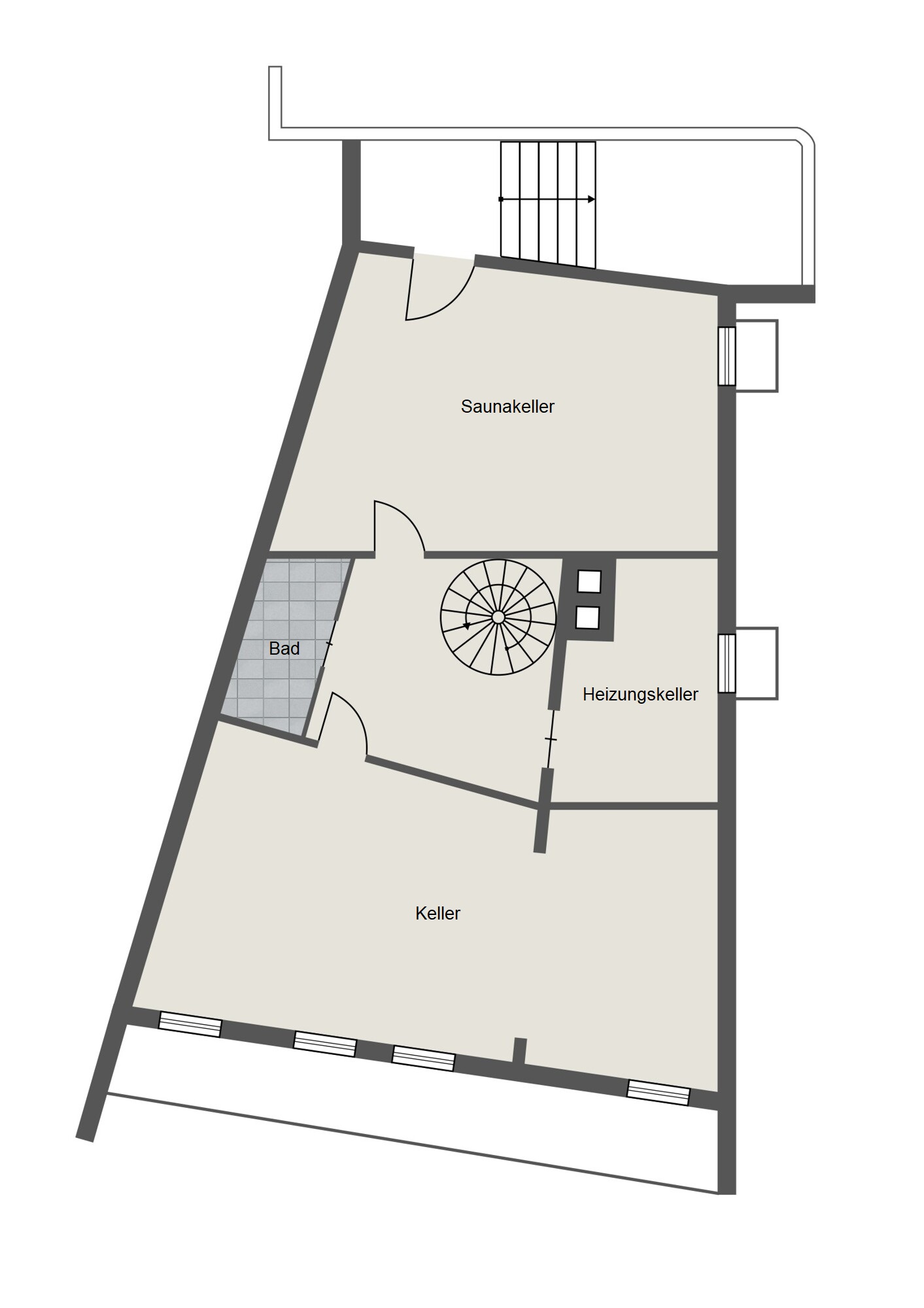 Das gesamte Gebäude ist komplett unterkellert, ein großer Kellerraum zur Straße ist dank breiter Fensterfront und großem Lichtschacht schon fast als Souterrain nutzbar. Im hinteren Kellerraum ist eine Sauna eingebaut und bietet mit dem zweiten vollwertigen Duschbad einen erholsamen Rückzugsort. Positiv zu erwähnen ist auch der private Zugang zur Tiefgarage mit gleich zwei dazugehörigen Stellplätzen.