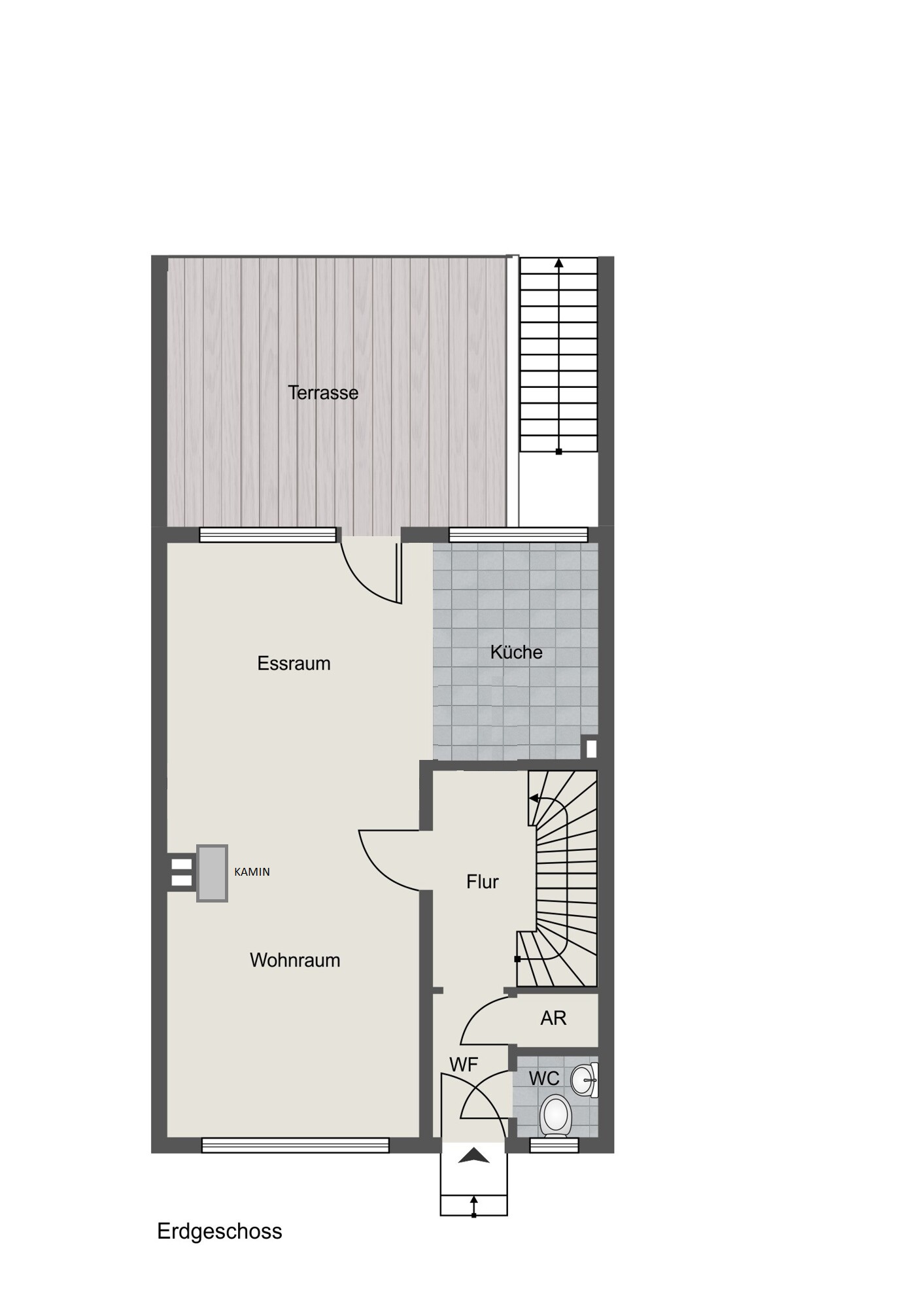 Im Obergeschoss stehen drei gut geschnittene Schlafzimmer sowie das moderne Tageslichtbad zur Verfügung. Durch die geschickte Raumaufteilung eignet sich das Haus ideal für Familien, Paare oder Menschen, die ein zusätzliches Arbeits- oder Gästezimmer benötigen.