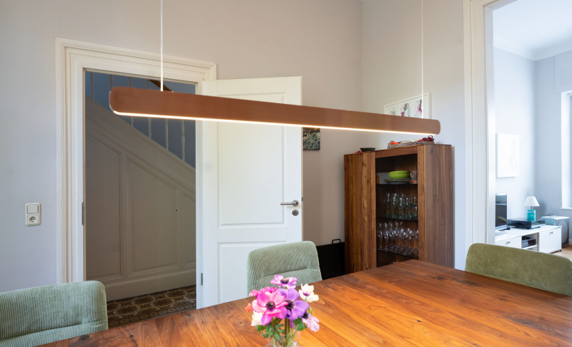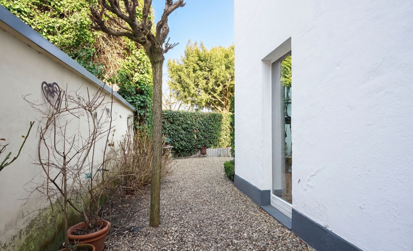 Das Erdgeschoss bildet das Herzstück des Hauses und wird zweifellos zu Ihrem zukünftigen Lebensmittelpunkt. Der große, offene Küchenbereich schafft ein wunderbares Kommunikationsparadies für die Familie und bietet ausreichend Platz. Der liebevoll angelegte Garten liegt nach hinten raus und ist ein ruhiger, grüner Rückzugsort mitten in der Stadt. Im vorderen Bereich des Hauses liegt ein Esszimmer mit Blick in den Garten sowie ein lichtdurchflutetes Wohnzimmer mit herrlich hohen Decken. Ein modernes Gäste-WC mit Fenster ergänzt den Komfort dieser Etage.